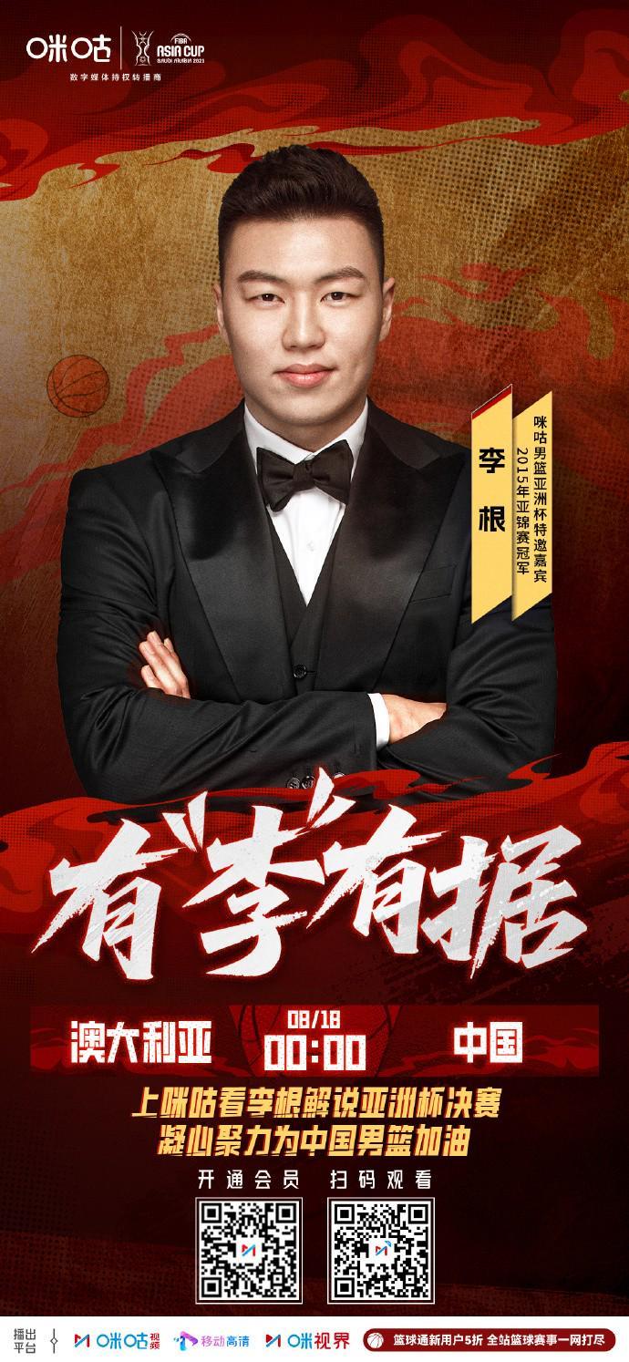 官方赛事平台-周琦、郭艾伦、李根将解说中国vs澳大利亚的亚洲杯决赛